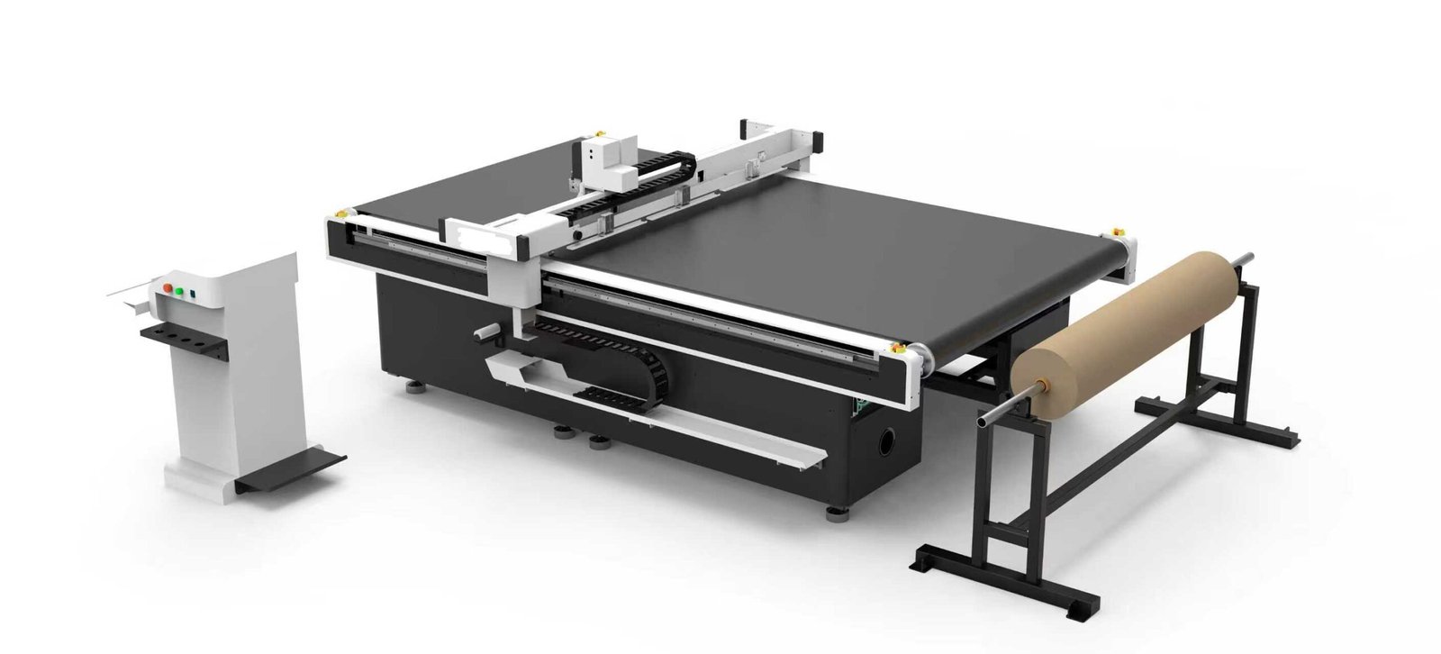 SV-2516s digital cutting machine is an intelligent digital cutting system, with receiving area,the material will not fall down after finish cutting.developed for sample cutting in packaging and printing industries, and for short-run customization production. Equipped with the most advanced 6-axis high-speed motion control system, it can make full-cutting, half-cutting, creasing, V-cutting, punching, marking, engraving and milling fast and precisely. All the cutting demands can be done with only one set of cutting machine. Our Cutting system can assist customers to process precise, novel, unique and high-quality products more quickly and easily in a limited time and space.