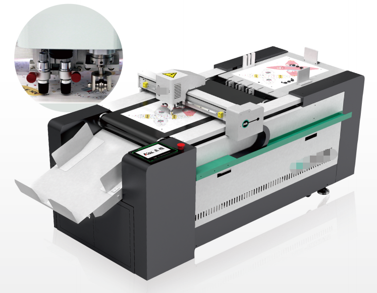 Based on different materials and thickness,there are different tools for choosing,such as kiss cut tool,creasing tool,V cut tool etc.here is the tool details and cutting video for checking.